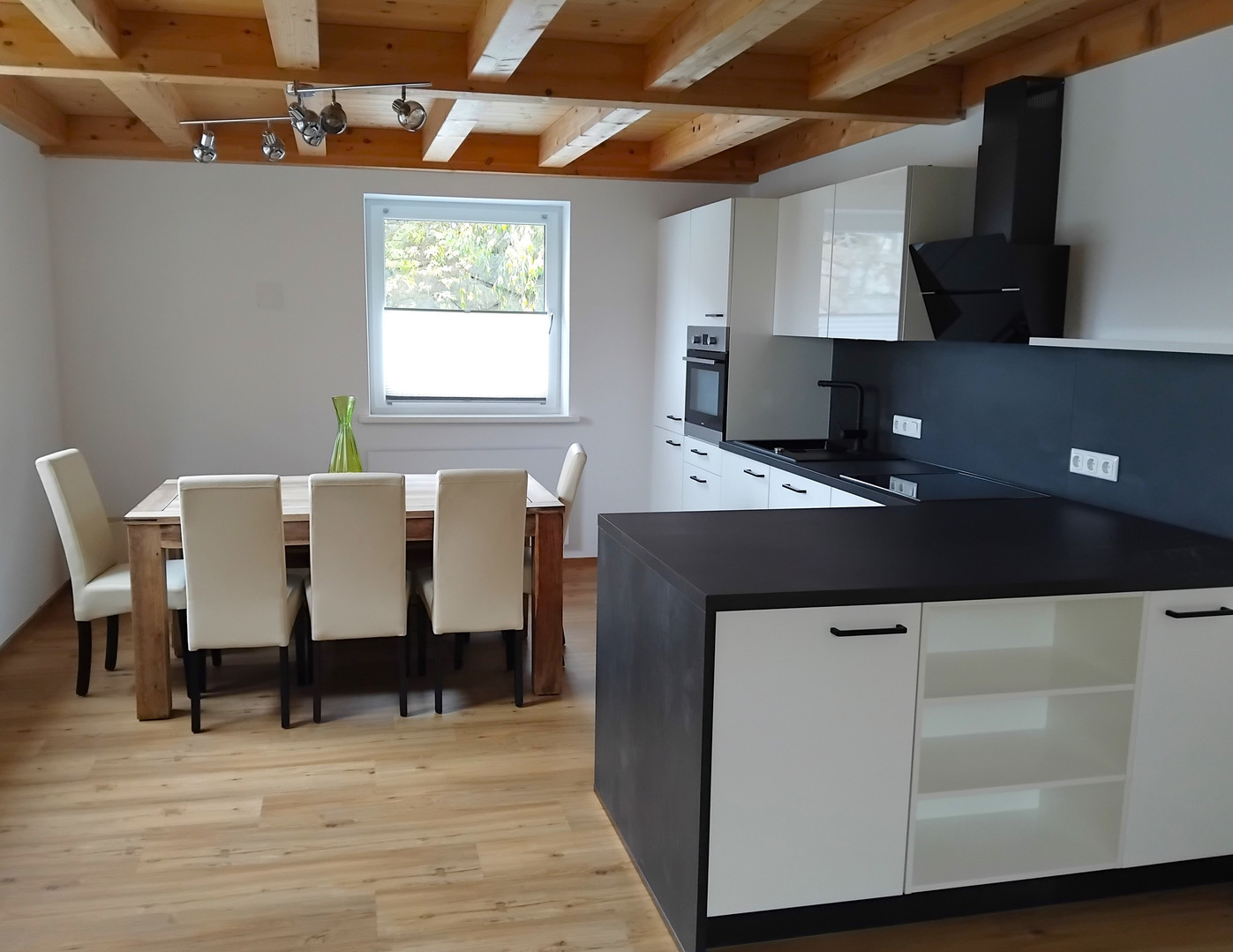 Bereits beim Betreten überzeugt der helle, offene Wohn- und Essbereich. Die geschmackvolle Einbauküche fügt sich harmonisch in den Raum ein und bildet das Zentrum für Kochen und Genießen. Große Fensterflächen schaffen eine angenehme Wohnatmosphäre und sorgen für viel Tageslicht.