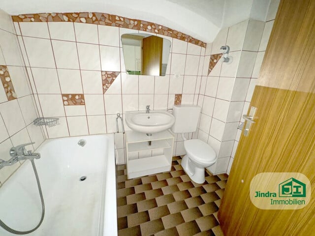 Das sanierte Badezimmer, verfügt über eine Badewanne mit Duschmöglichkeit, die zu erholsamen Stunden einlädt. Ein WC und ein Waschbecken ist ebenso vorhanden.