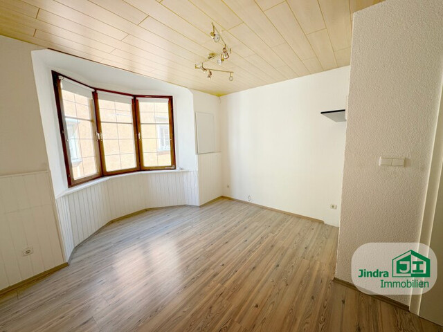 Der Wohnbereich der Garconniere verfügt über einen einladenden Erker, der nicht nur für eine angenehme Lichtdurchflutung sorgt, sondern auch einen malerischen Blick auf die umliegende Altstadt bietet. Hier können Sie entspannte Stunden verbringen und die Atmosphäre des historischen Gebäudes genießen.