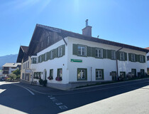 Das historische Gebäude, das im Jahr 1990 zu Wohnungen umgebaut wurde, strahlt mit seiner malerischen Fassade, den grünen Fensterläden und den liebevollen Details eine warme, einladende Atmosphäre aus.
