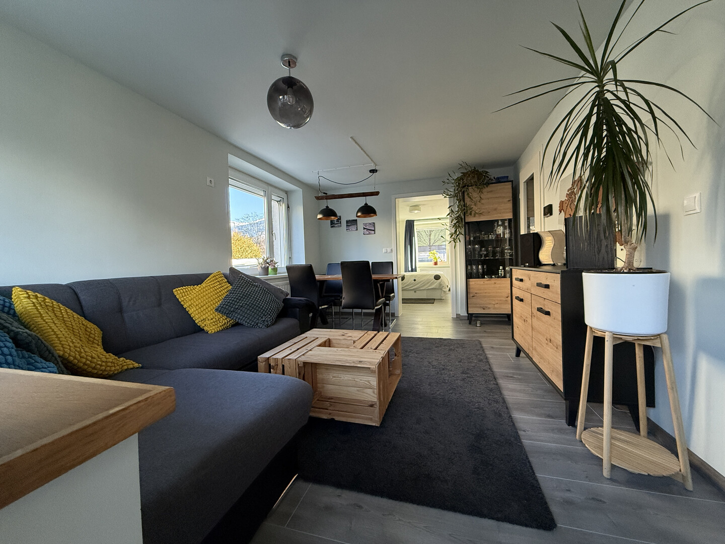Am Ende des Ganges gelangt man in den hellen und großzügigen Wohn- und Essbereich.