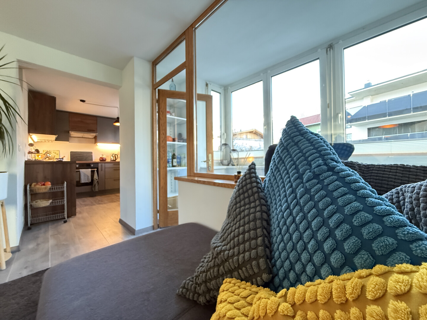 Große Fensterflächen sorgen für eine angenehme Lichtdurchflutung und schaffen eine besonders wohnliche Atmosphäre.