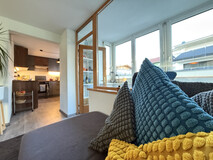 Die Moderen Einbauküche integriert sich perfekt in den durchdachten Grundriss, die Loggia ist dem Wohnzimmer vorgelagert und lädt zum Entspannen und Verweilen an sonnigen Abenden ein.