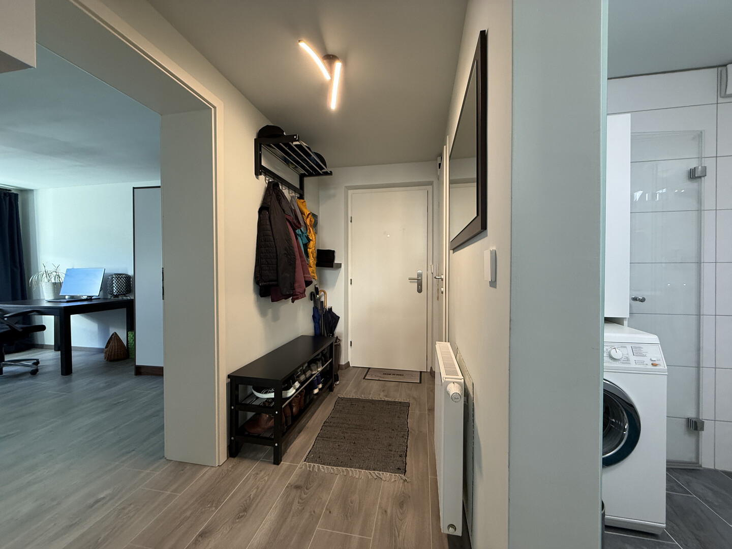 Beim Betreten der Wohnung werden Sie vom freundlichen Eingangsbereich empfangen.