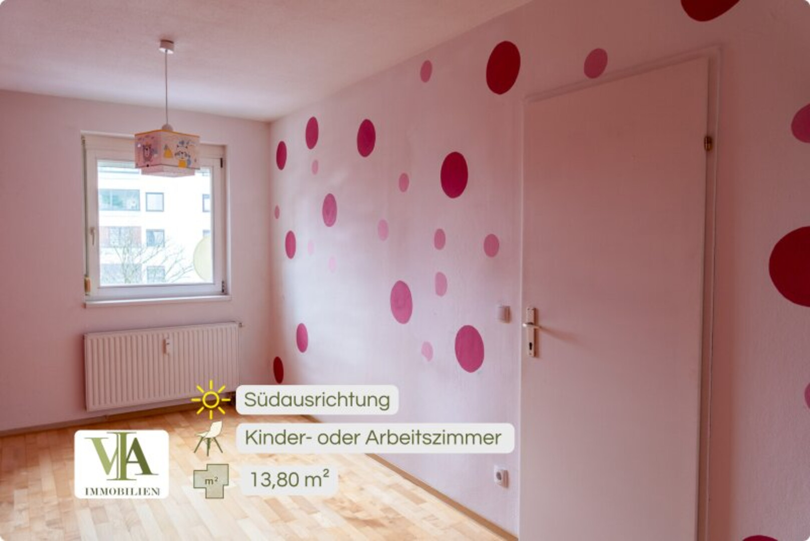 - Kinder- oder Arbeitszimmer (ca. 13,80 m²): Hell und vielseitig nutzbar.