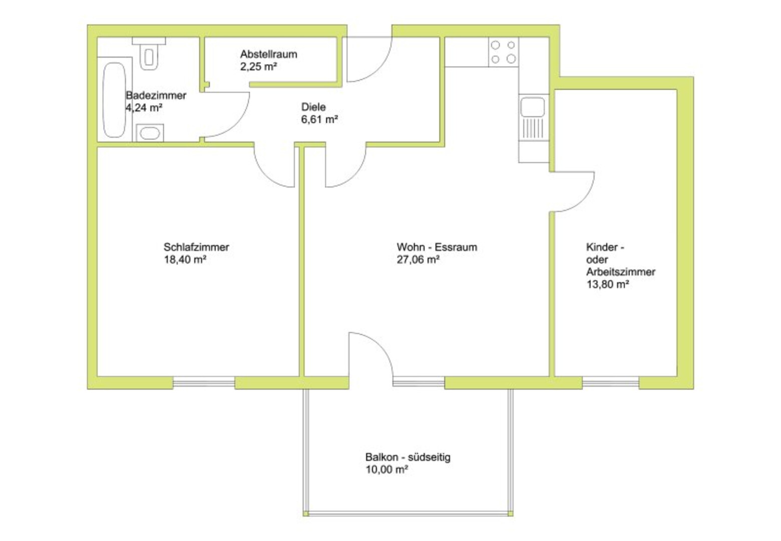 - Abstellraum (2,25 m²): Praktischer Stauraum direkt in der Wohnung.