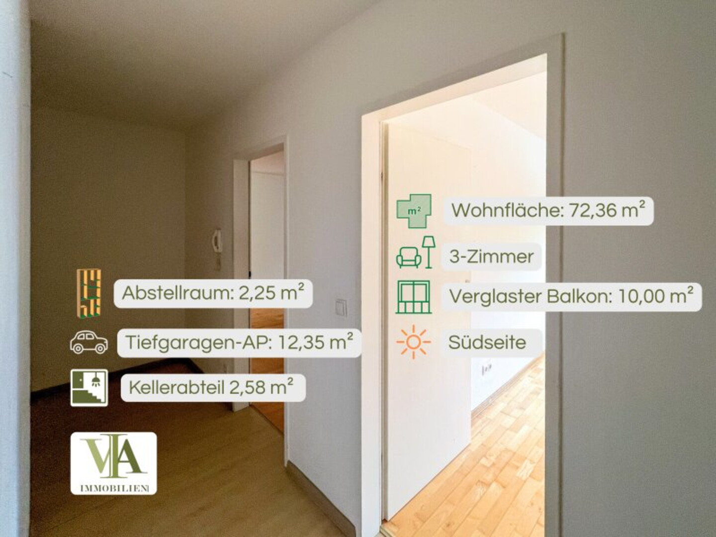 - Keller: Ein eigenes Kellerabteil mit ca. 2,58 m² ist inkludiert.