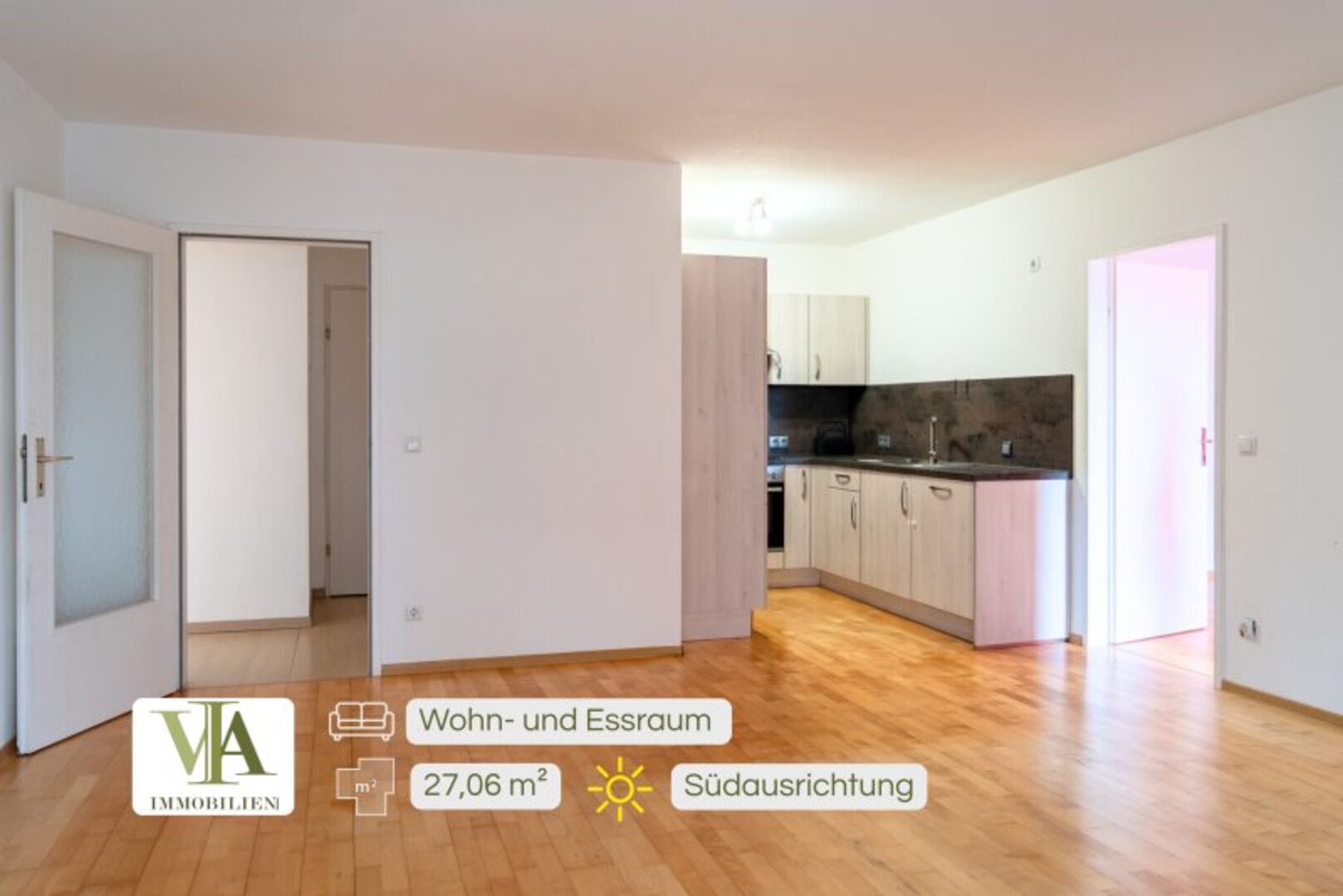 - Wohn-Essbereich (ca. 27 m²): Das helle Zentrum der Wohnung mit direktem Balkonzugang.
