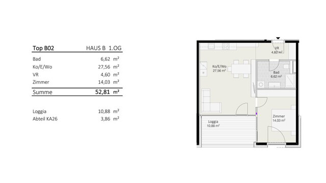 Entsprechend der heutigen Zeit und auch der Lage des Projektes wurde in der Konzeption der Schwerpunkt auf kleinere Wohneinheiten gelegt. So teilen sich die 2-Zimmer-Wohnungen in Größen von ca. 44 m² bis 53 m² auf, während die 3-Zimmer-Wohnungen ca. 70 m² aufweisen. Der westliche Gebäudetrakt ist mit 4 vollwertigen Obergeschoßen (inklusive Gewerbe im EG) um ein Geschoß höher als der östliche.