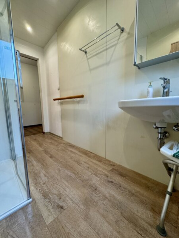 Das Badezimmer, mit Fenster und Waschmaschinenanschluss, wurde im April 2018 komplett saniert (Rechnung vorhanden). Ausgestattet mit einer bodenbündigen Dusche inkl. Duschwand aus Glas, Wände in Seidenglanz, Böden in Holzoptik, Waschbecken und Spiegelschrank. In der Toilette wurde ein neues WC installiert.
