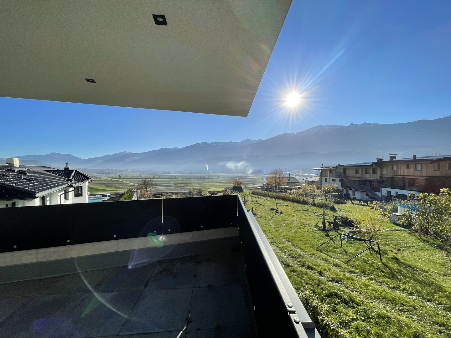 - Vom Wohnzimmer und den beiden Schlafzimmern aus begehbar befindet sich die ca. 16,3 m² große Südterrasse, welche einen atemberaubenden Blick über die wunderschönen Felder Thaurs und einen Weitblick auf die Tiroler Bergwelt bietet.