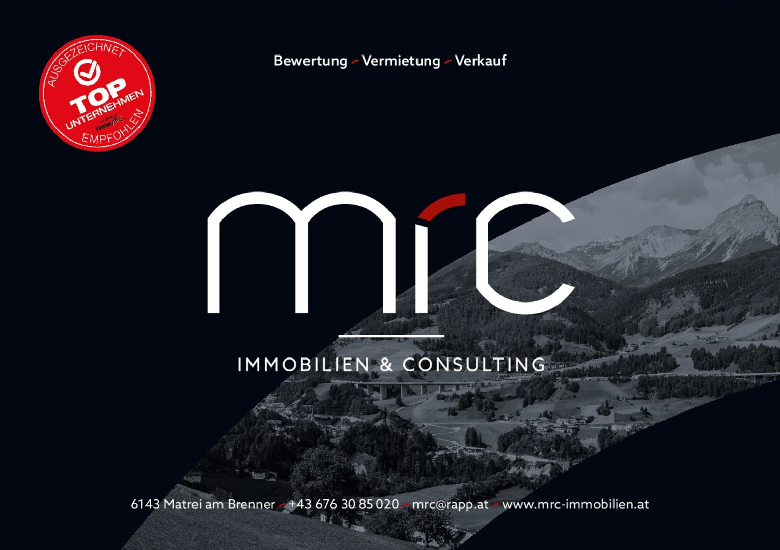 Dieses freibleibende Angebot wird Ihnen von der MRC- Immobilien & Consulting GmbH, welche als Immobilienmakler tätig ist, überreicht. Sämtliche Visualisierungen, Ansichten, Angaben, Inhalte und Grundrisse dieser Verkaufsunterlage sind vorbehaltlich Änderungen und können durch Modifikationen und / oder notwendige Veränderungen abweichen. Alle Angaben erfolgen ohne Gewähr.
