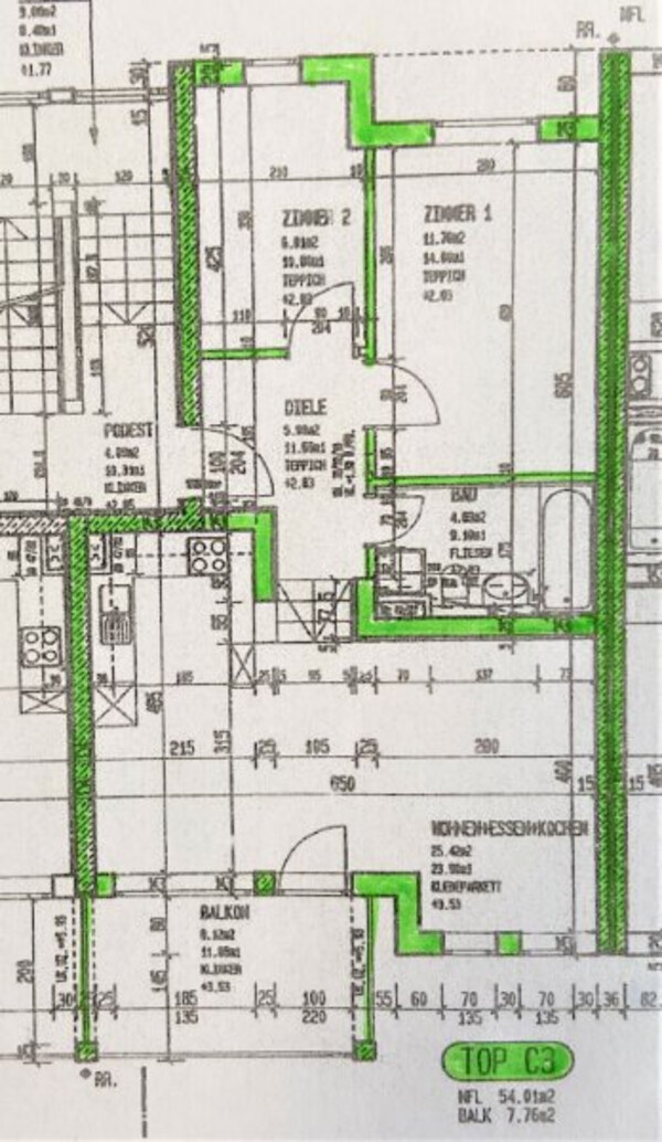 ebenfalls verfügt die Wohnung zusätzlich über ein abgeschlossenes Kellerlager im Ausmaß von ca. 6,81 m2