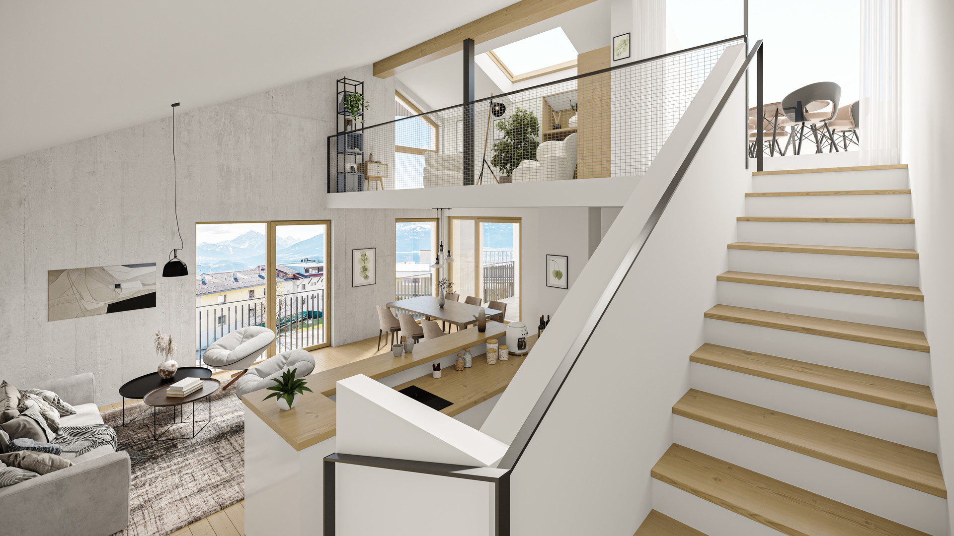 Die südorientierte Wohnanlage garantiert das ganze Jahr über viel Sonnenschein und bietet einen außergewöhnlichen Ausblick über die umliegende Bergwelt. Die großzügigen Loggien und Dachterrassen ermöglichen es, die Natur von zuhause aus zu genießen.