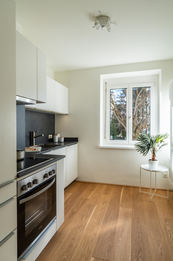 Das Tageslichtbad mit Dusche und Fenster sorgt für ein frisches und angenehmes Raumklima. Ein Balkon lädt zum Verweilen im Freien ein, während das praktische Kellerabteil zusätzlichen Stauraum bietet. Die Wohnung bzw. das Haus wurde vor Kurzem umfassend saniert, darunter die Elektrik und Heizung (Grundwasser Wärmepumpe mit Gas-Unterstützung), sodass sich die Einheit in einem modernen, zeitgemäßen Zustand befindet.