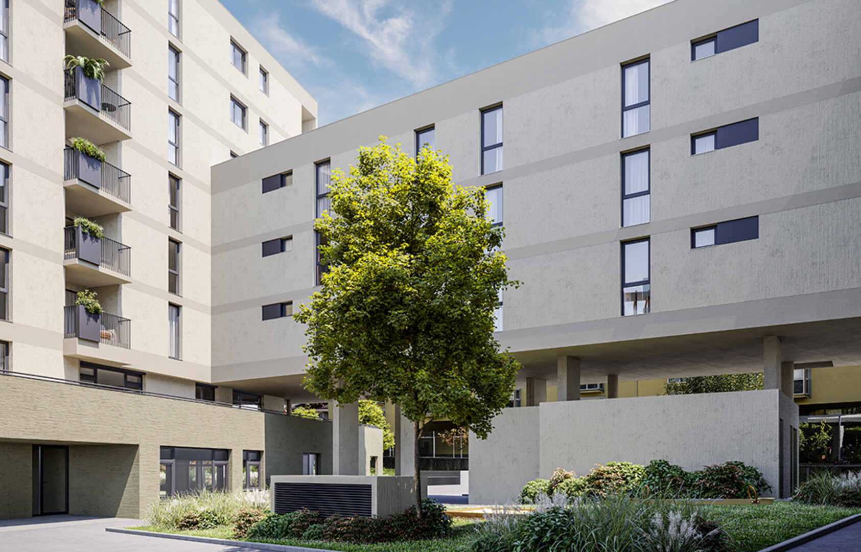 Das Neubauprojekt umfasst zwei architektonisch verbundene Wohngebäude, die sich mit ihrer zeitlosen, klaren Fassadengestaltung harmonisch in die Umgebung integrieren. Durch die Anordnung der Wohnhäuser entsteht ein ruhiger Innenhof, welcher durch offen angelegte Durchwegungen von der Egerdachstraße und dem angrenzenden Geh- und Fahrradweg zugänglich ist. Der Fahrradweg bietet eine direkte Anbindung an das Stadtzentrum, sodass Universität, Bildungseinrichtungen, Einkaufsmöglichkeiten und Freizeitangebote schnell erreichbar sind.