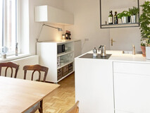 Wie schon oben erwähnt wurde diese Villa vor mehr als 20 Jahren aus Ihrem Dornröschenschlaf befreit und im wahrsten Sinn des Wortes neu adaptiert. Ab dem Jahre 2005 konnte dann eingezogen werden! Der Keller, die Heizungsanlage (Gasheizung) wurde neu adaptiert- es gibt auch selbstverständlich eine FI (Schutzschalter Elektrik). Die alten Eichenparketten, teils intarsiert (siehe Wohnzimmer) wurden abgeschliffen und neu versiegelt. Es wurde für jeden einzelnen Eigentümer eine tolle und somit äußerst angenehme Wohnatmosphäre geschaffen. Die im 1. Obergeschoss befindliche Wohnung ist sowohl nach Nordost (Küche), Südost (Wohnzimmer) und nach Süden (Schlafzimmer) ausgerichtet. Hinweis: Die Wohnung ist nicht barrierefrei!