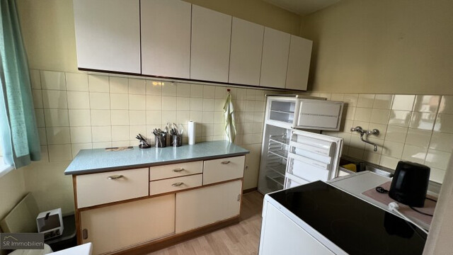 Eine ältere Wohnung in unmittelbarer Nähe zur Klinik – ideal für alle, die hier arbeiten und wohnen möchten. Die Raumaufteilung ist durchdacht: ein großzügiges Schlafzimmer mit Balkon, ein heller Wohnbereich mit großer Fensterfront und ausreichend Tageslicht, eine kompakte Küche sowie ein Eingangsbereich mit Garderobe.