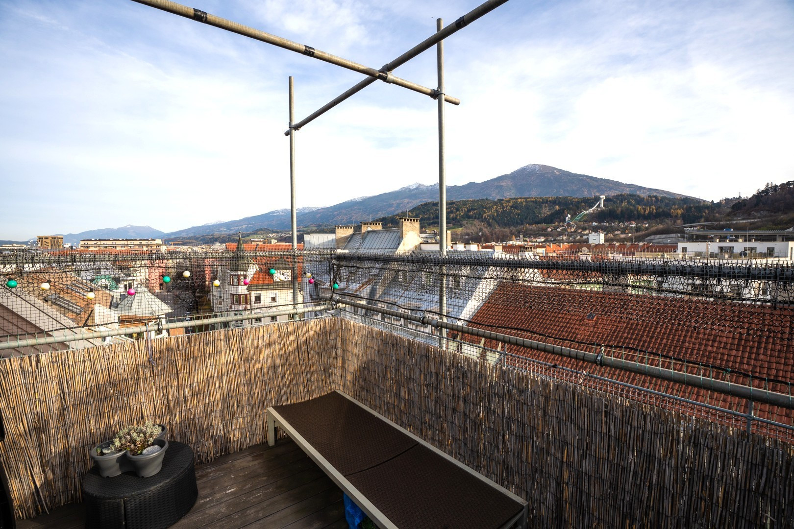 Ein besonderes Highlight ist die sonnige Südterrasse, ideal für entspannte Stunden mit Blick auf das Bergpanorama und die Dächer der Stadt.