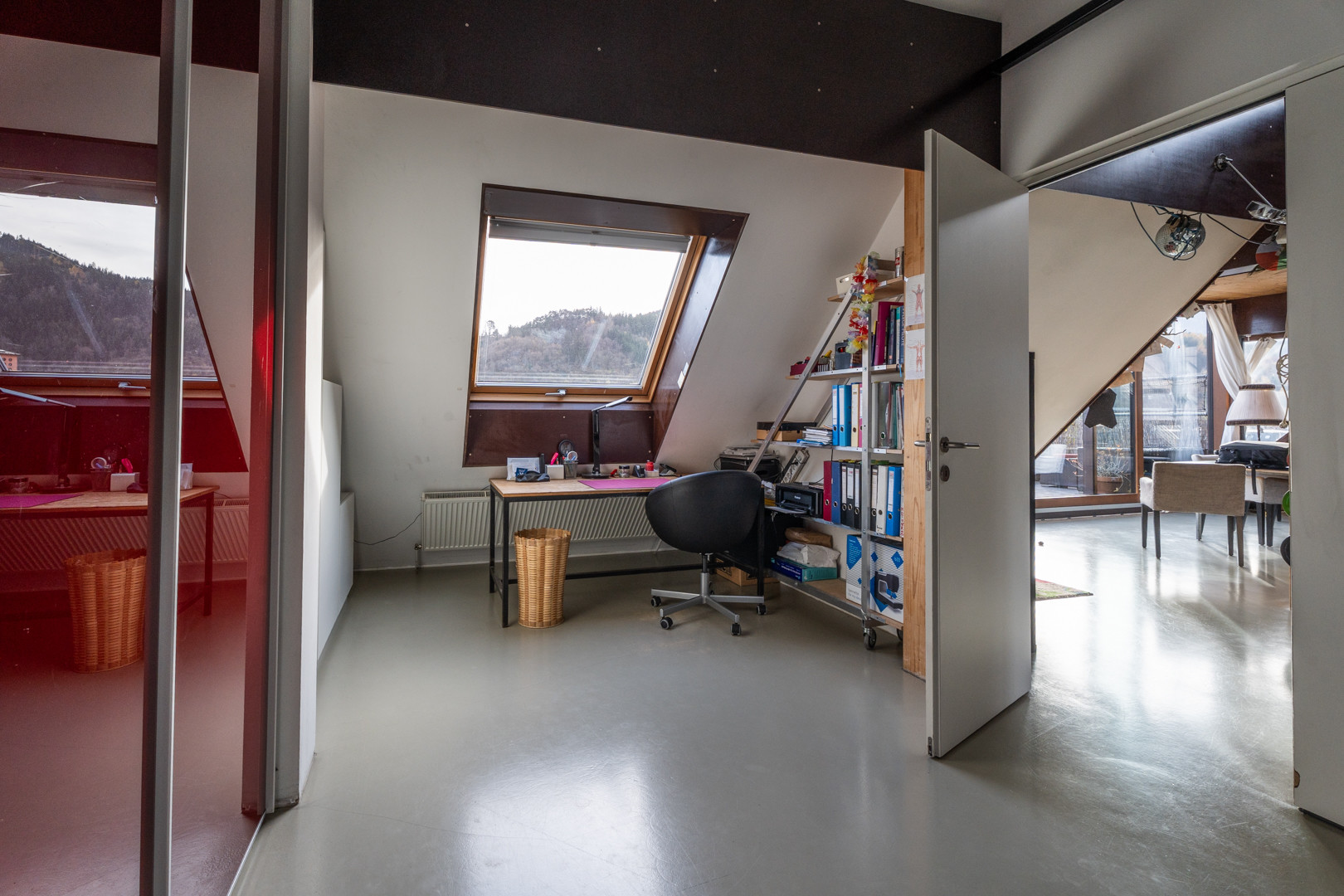 Die ca. 91 m² Wohnfläche sind gemessen ab 1,50 m Raumhöhe und verteilen sich auf vier Zimmer, jedes mit Postkartenblick entweder auf die Nordkette oder Richtung Süden auf Bergisel und den Patscherkofel.