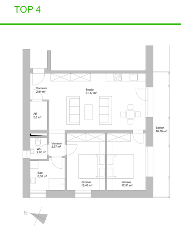 - Ausrichtung Balkon/Terrasse: Süden
