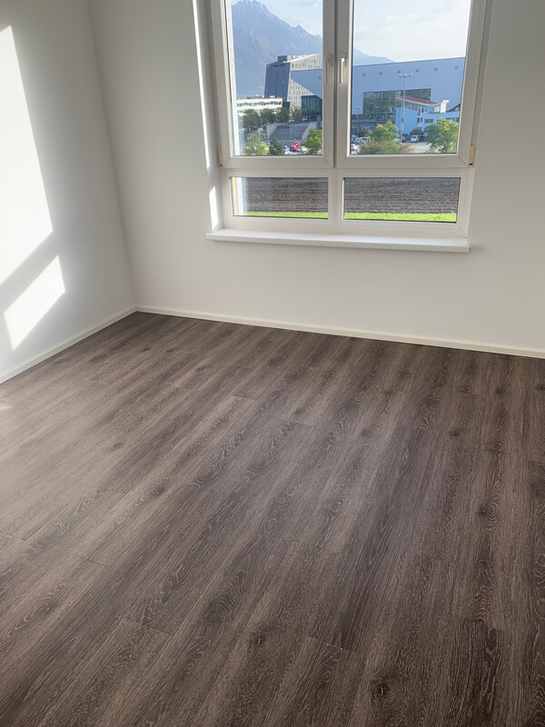 Im gesamten Wohnbereich ist ein moderner, pflegeleichter Vinylboden verlegt.