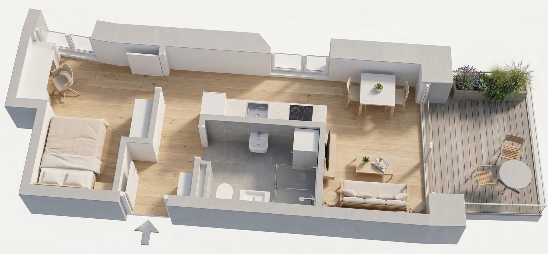 Die Wohnung überzeugt durch eine durchdachte Raumaufteilung und bietet alles, was man für komfortables Wohnen braucht – ideal für Singles, Paare oder alle, die eine kompakte und hochwertige Wohnlösung suchen.