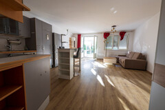 Die Wohnung hat eine Fläche von ca. 66,60 m² plus ca. 8,37 m² Wintergarten, ca. 40,63 m² Terrasse und besteht aus Vorraum, Bad/WC mit WM-Anschluss, Schlafzimmer, Wohnzimmer mit integrierter Küche, Wintergarten,