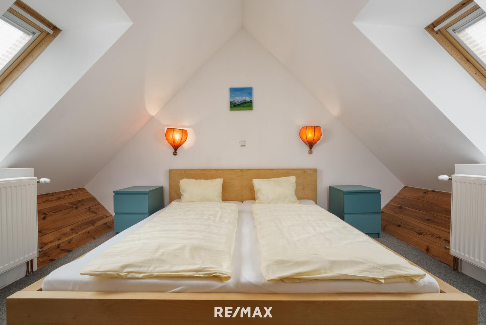 - Schlafzimmer auf der oberen Ebene mit klarer Trennung von Wohn- und Schlafbereich
