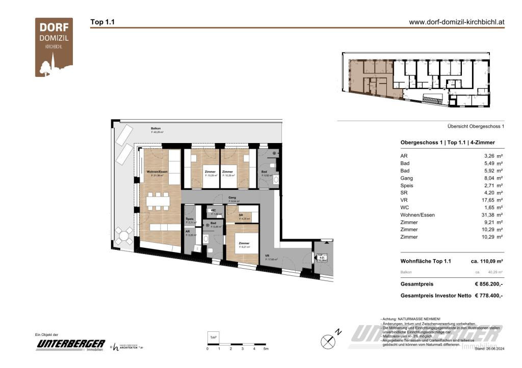 Die Lage des „Dorf Domizils“ ist unübertroffen. Umgeben von der ruhigen bezaubernden Tiroler Natur, bietet die exklusive Wohnanlage gleichzeitig die Nähe zum pulsierenden Dorfleben. Einkaufsmöglichkeiten, Schulen und Freizeiteinrichtungen sind bequem erreichbar, was den Alltag äußerst komfortabel gestaltet.