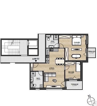 Das Apartment 02 befindet sich im Erdgeschoss und bietet mit 81,12 m² Wohnfläche höchsten Wohnkomfort für Familien, Paare oder anspruchsvolle Investoren.