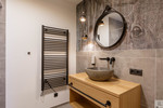 •Badezimmer: Exklusiv designt mit modernen Badmöbeln und hochwertigen Design-Armaturen.