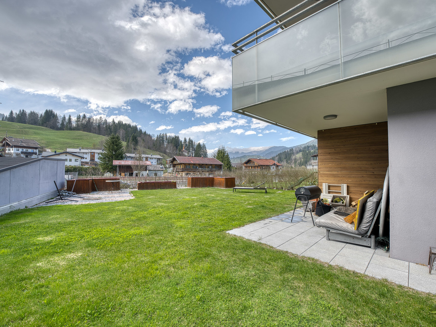 Die architektonisch anspruchsvolle Wohnanlage, in der sich dieses Objekt befindet, wurde im Jahr 2017 als Neubau errichtet und liegt in Achenkirch im Dorfteil Achental. In zwei getrennten Baukörpern mit einer gemeinsamen Tiefgarage wurden insgesamt 15 Wohneinheiten errichtet, die jeweils über ein Haupstiegenhaus und einen Personenaufzug erschlossen werden. Die gegenständliche Wohneinheit Top C02 liegt im Erdgeschoss in einer Randlage des Gebäudes, ist somit dreiseitig belichtet und weist einen äußerst großzügigen Rundum-Privat-Garten mit einer Größe von ca. 285 m² auf. Dieser ist bereits bepflanzt und dreiseitig rundum eingezäunt. Die Wohnung erschließt sich von der zentralen Diele mit Stauraum und Garderobenmöglichkeiten und einem angeschlossenen Abstellraum. Den Kochbereich betritt man offen über die Diele, die Einbauküche mit dem frei stehenden Block ist in elegantem schlichten Weiß gehalten. Der Essplatz setzt sich in den attraktiven Wohnraum mit raumbreiter bzw. raumhoher Verglasung zur Terrasse fort. Die Terrasse ist nach Süd-Westen orientiert, ist vollständig gedeckt und es befindet sich dort eine geschlossene Holz-Box als Stauraum für Gartengeräte. Über das Wohnzimmer gelangt man in das Eltern-Schlafzimmer mit Schrankverbau, auch dieses hat einen direkten Zugang zur Terrasse. Nach Osten sind zwei gleich große Kinderzimmer mit jeweils einem Gartenzugang situiert, anschließend liegt das Tages-WC und das nach Süden orientierte großzügige Badezimmer mit Badewanne, Ganzglasdusche und Waschtischverbau. Neben der energieeffizienten Massivbauweise mit Energieversorgung durch Fernwärme und der attraktiven Gesamterscheinung der Wohnanlage, besticht die Ausstattung durch den Bodenbelag aus fein strukturiertem, weißen italienischen Feinsteinzeug mit Fußbodenheizung, Fenster mit Dreifach Verglasung und Außenbeschattung, dem großen Garten, zwei TG Stellplätzen uvm.