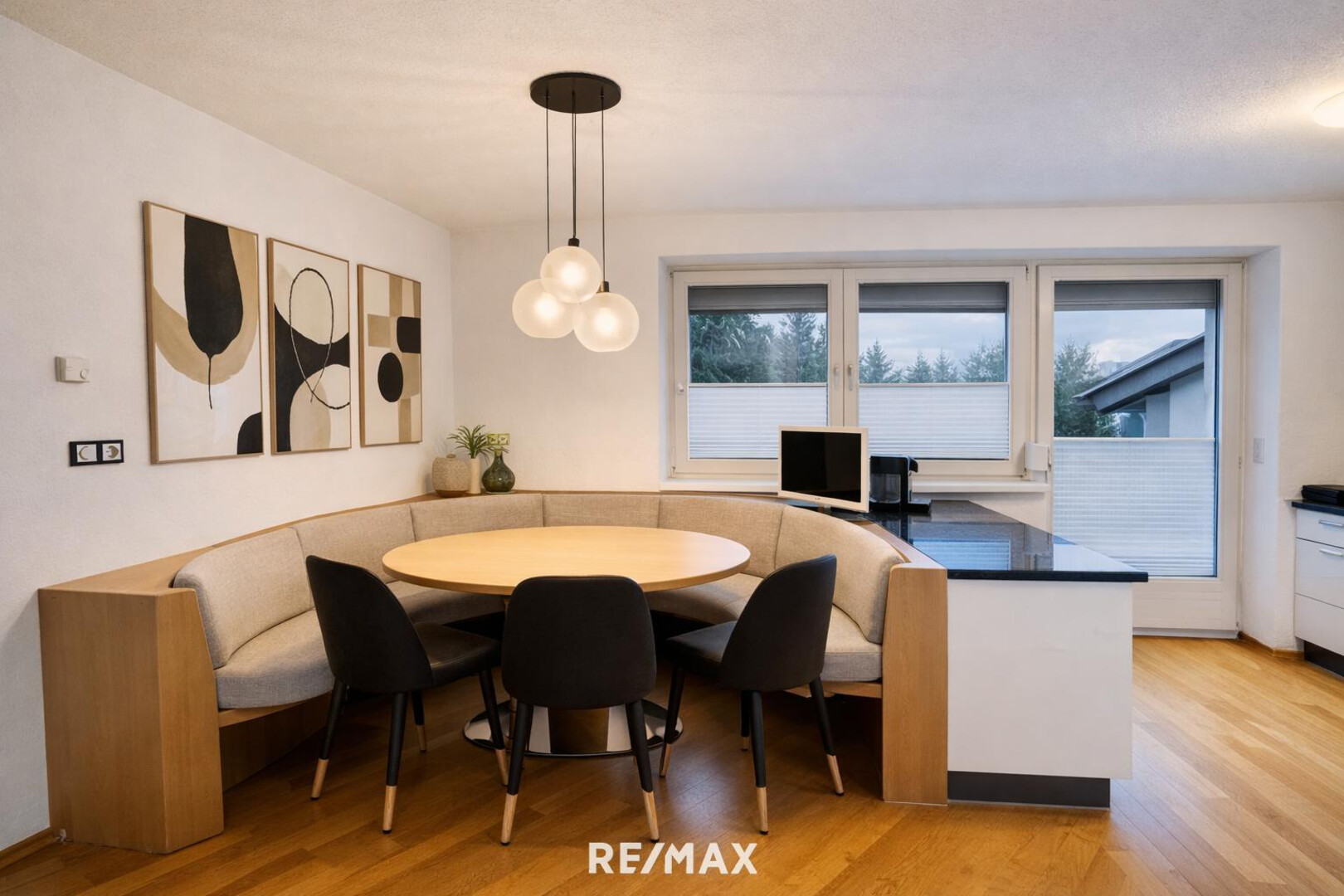 Die Wohnung begeistert mit einem lichtdurchfluteten und großzügig angelegten Wohn- und Essbereich, der durch die vielen Fensterflächen nahtlos in die freie Natur übergeht.
