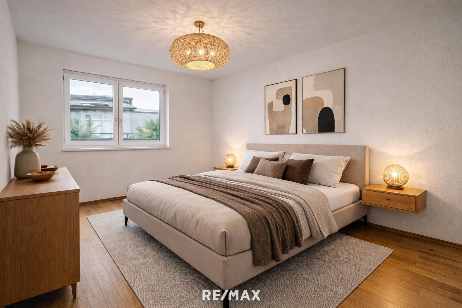 Der durchgehende Echtholzparkettboden verleiht jedem Raum eine warme, hochwertige Atmosphäre.