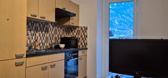 Die großzügige Wohnküche bietet ausreichend Platz für Kochen, Essen und Verweilen. Von hier aus gelangst du direkt auf den sonnigen Südbalkon mit Blick auf die umliegende Bergwelt.