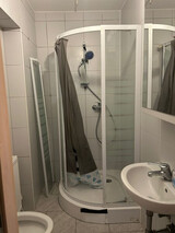 Das Badezimmer ist mit Dusche und WC ausgestattet und präsentiert sich in einer praktischen, pflegeleichten Ausführung.