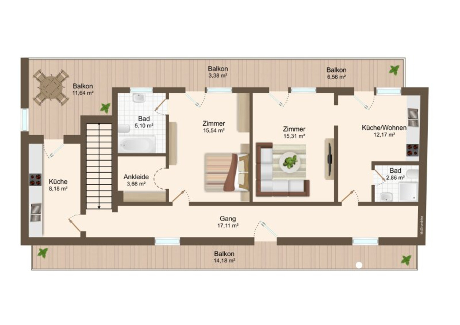 Im Obergeschoss auf ca. 81,20 m² befinden sich Wohnräumlichkeiten mit ca. 35,80 m² Balkonfläche, welche die Immobilie zu einem perfekten Wohn- und Arbeitsplatz abrunden.