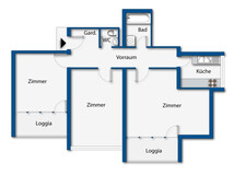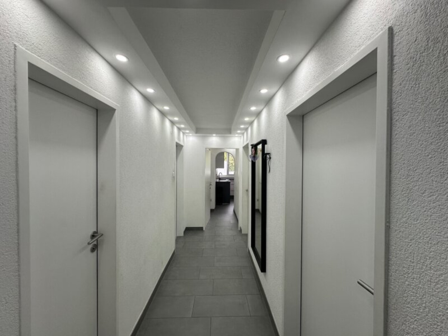 Zwei sonnige Loggien mit Südwest-Ausrichtung, großzügige ca. 93 m² mit durchdachtem Grundriss, komplett saniert 2021 – und eine Lage, die den Alltag spürbar leichter macht. Der Supermarkt liegt 150 Meter entfernt, der Bus direkt vor der Tür, der Bahnhof in fünf Gehminuten. Wer pendelt, weiß was das wert ist. Wer bleibt, auch.