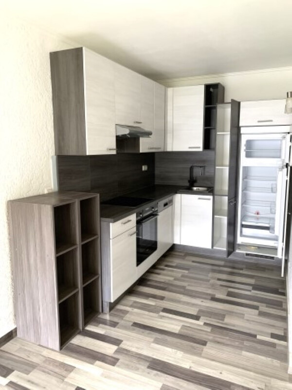 Die Wohnküche ist mit einer Einbauküche ausgestattet.