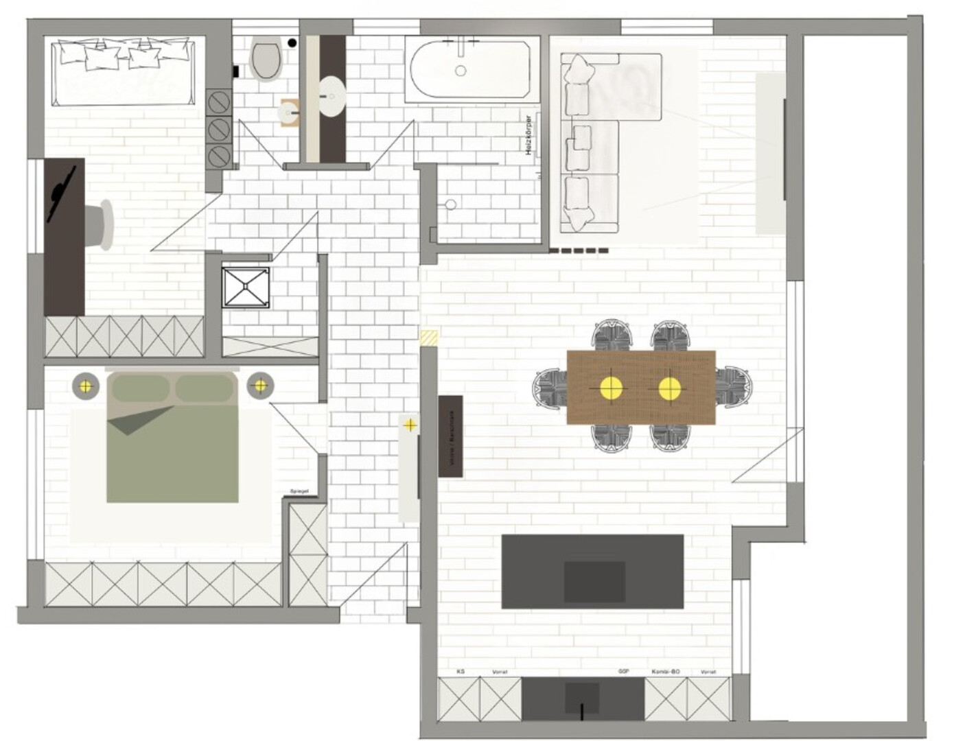 - Boden: Fliesen, Parkett