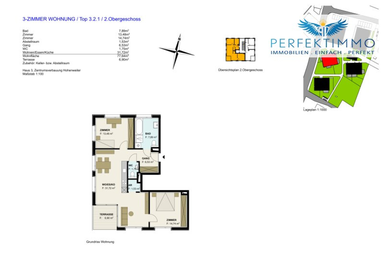 Bei den Bildern zum Objekt handelt es sich lediglich um Renderings, die eine visuelle Vorstellung präsentieren. Wir garantieren keine Übereinstimmung mit den Plänen.