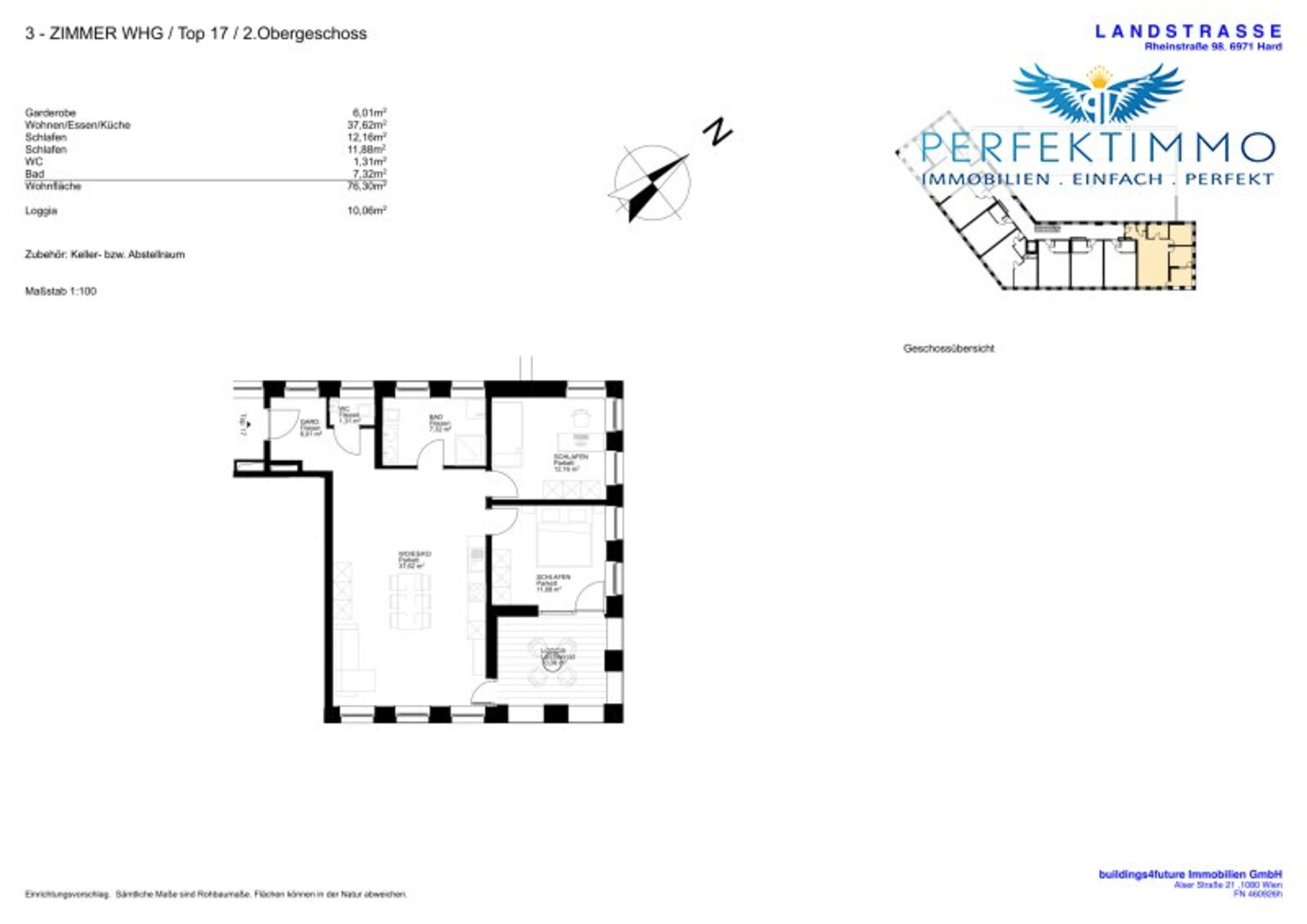 | 2. OG | Top 17 | 3 | 76,30 m² | 10,06 m² | € 1.220,00 |